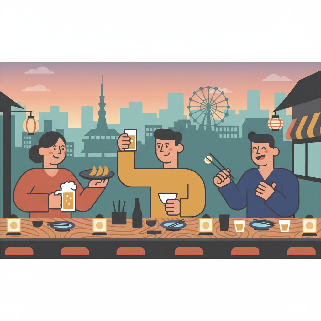 Picture this: You’re wedged into a lively izakaya in the neon-soaked backstreets of Namba. The air is thick with the scent of grilled yakitori and the golden haze of cheap, delicious beer. You’re with a new group of Osaka friends, people... -