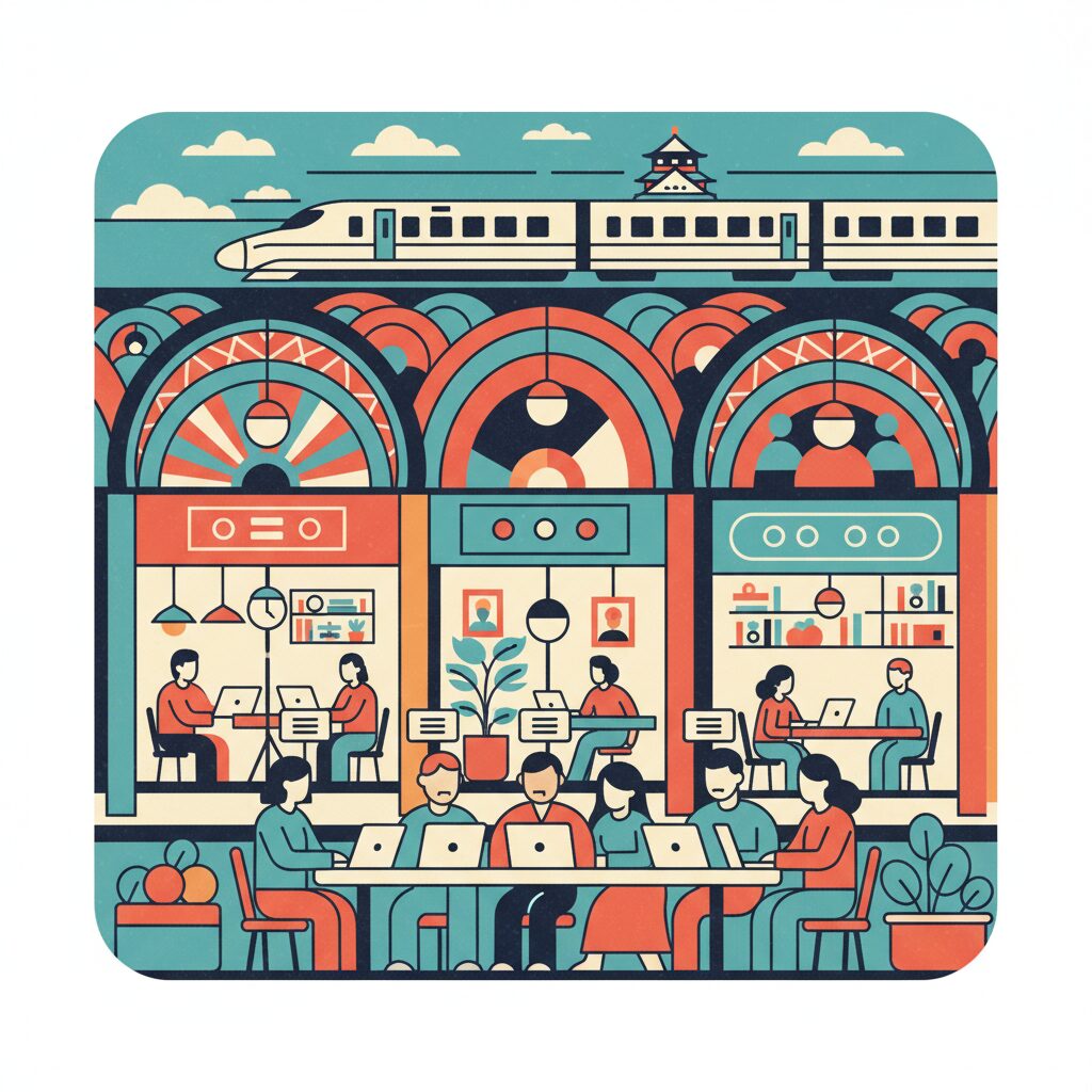 These spaces draw a distinct crowd: freelancers, startup founders, remote employees of international companies, and digital nomads. The community is based not on shared location but on shared professional ambition. The language often blends Japanese and English, with an emphasis on collaboration and networking.