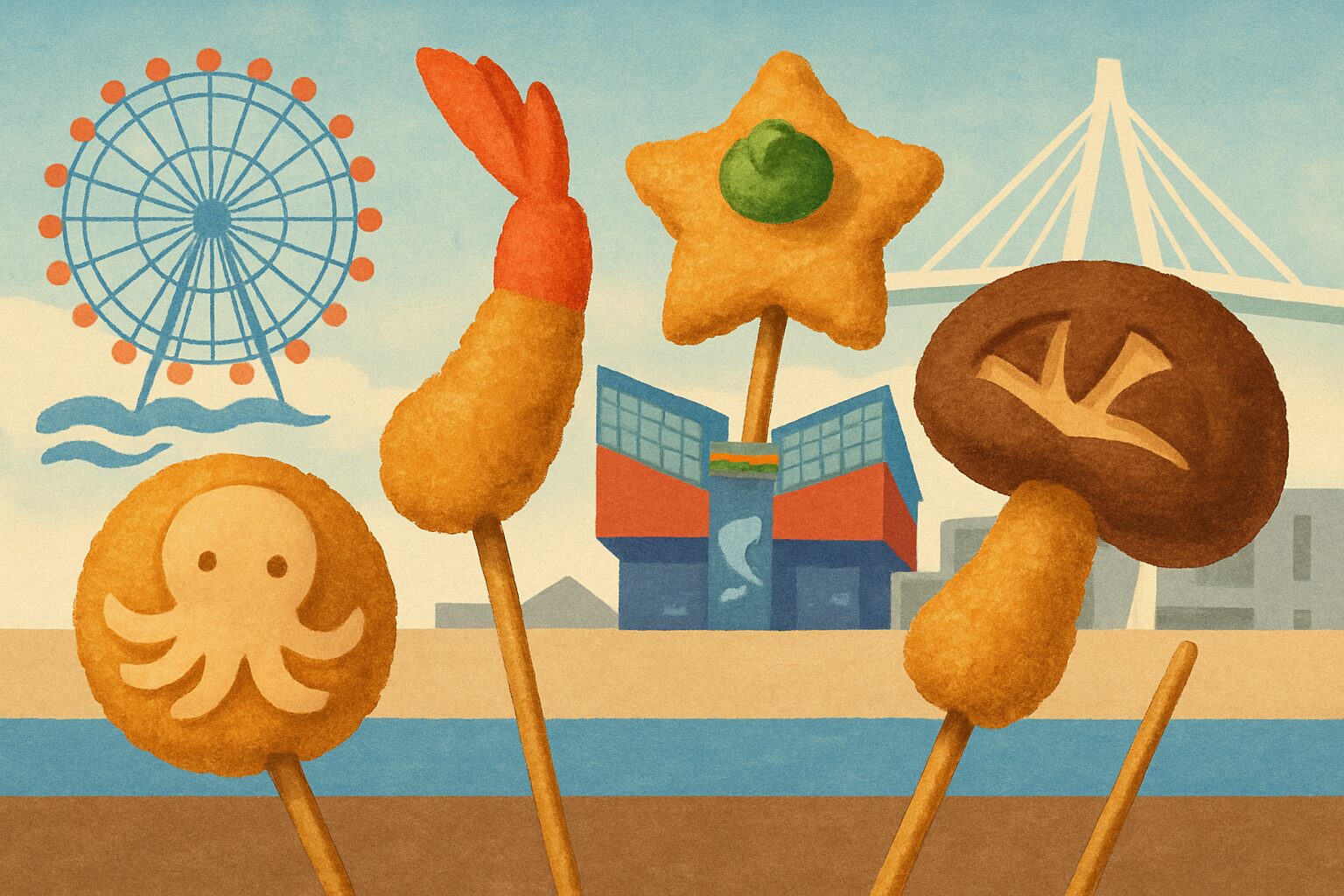 Welcome, fellow traveler, to a side of Osaka that glitters and glows right by the sea. My name is Megumi Hara, and as an event planner from Tokyo, I’m constantly on the hunt for experiences that sparkle with genuine fun and local flavor. While the neon maze of Dotonbori and the historic grandeur of Osaka Castle often steal the spotlight, I want to take you to the city’s vibrant Bay Area. Here, against a backdrop of endless blue sky and the gentle rhythm of the waves, stands the majestic Tempozan Ferris Wheel, a colossal, colorful clock that watches over the harbor. Next to it, the world-renowned Osaka Aquarium Kaiyukan holds oceanic wonders. But nestled between these giants is our destination: Tempozan Market Place. It might look like a simple shopping center from a distance, a convenient stop for souvenirs, but step inside, and you’ll discover it’s a treasure chest of Osakan culinary culture, specifically a playground for one of the city’s most beloved soul foods: kushikatsu. Forget what you think you know about simple fried skewers. Here in the refreshing sea breeze, we’re about to uncover an interactive, creative, and utterly delicious adventure that goes far beyond the standard tourist trail. This is where Osaka’s playful spirit meets its passion for food, creating a memory you won’t just savor, but one you’ll have a hand in making yourself.