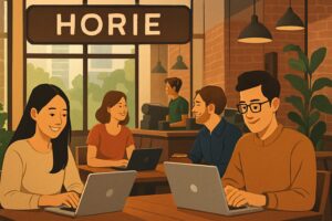 While the energy of Dotonbori is undeniable, those looking for a quieter place to focus can find their sanctuary in nearby work-friendly cafes in Horie.